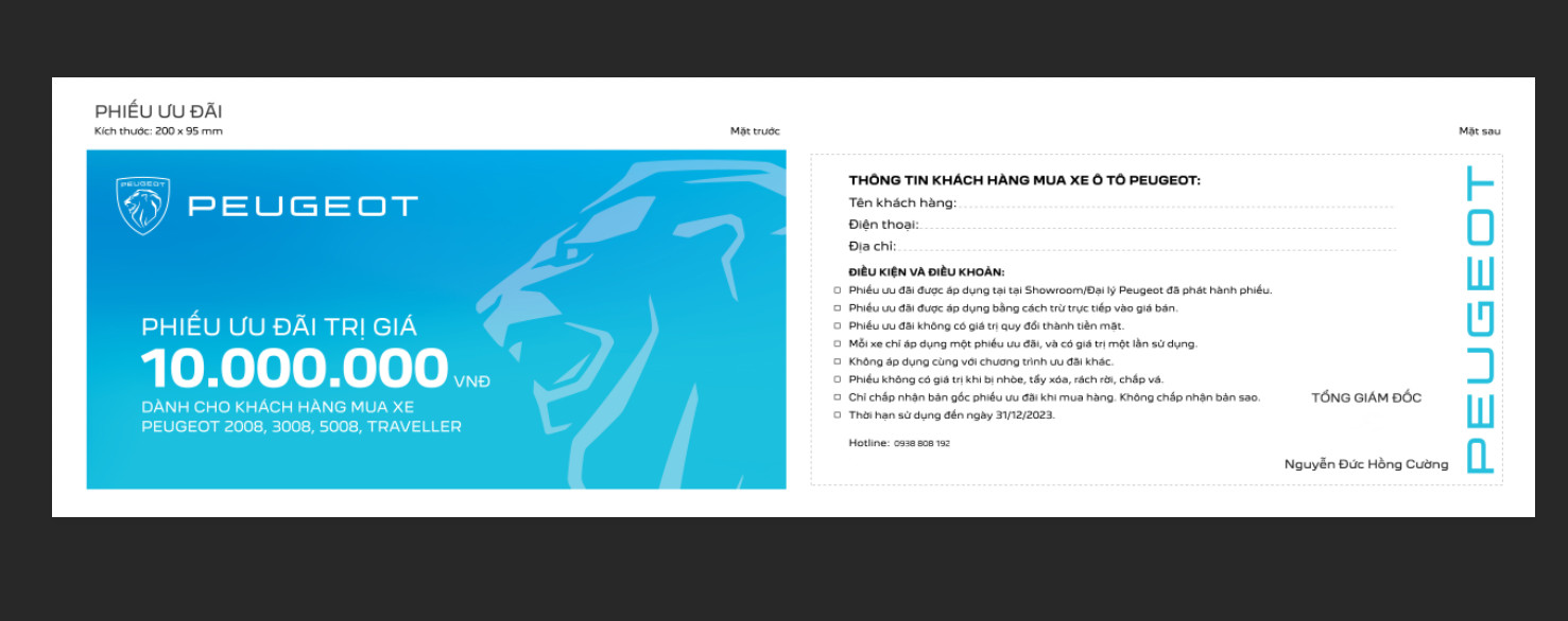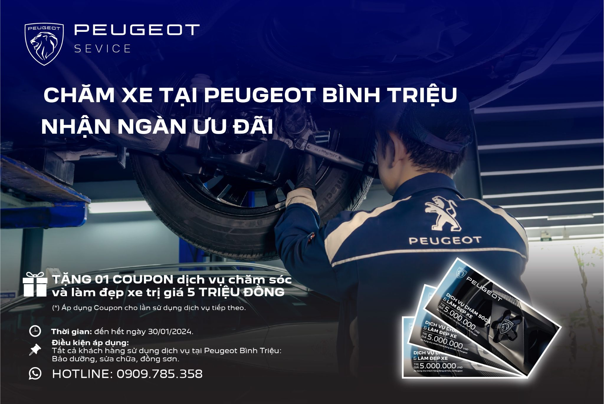 Khách hàng đang sở hữu các dòng xe Peugeot được tặng Voucher dịch vụ chăm sóc xe trị giá 5 triệu đồng từ hôm nay cho đến ngày 31/01/2024